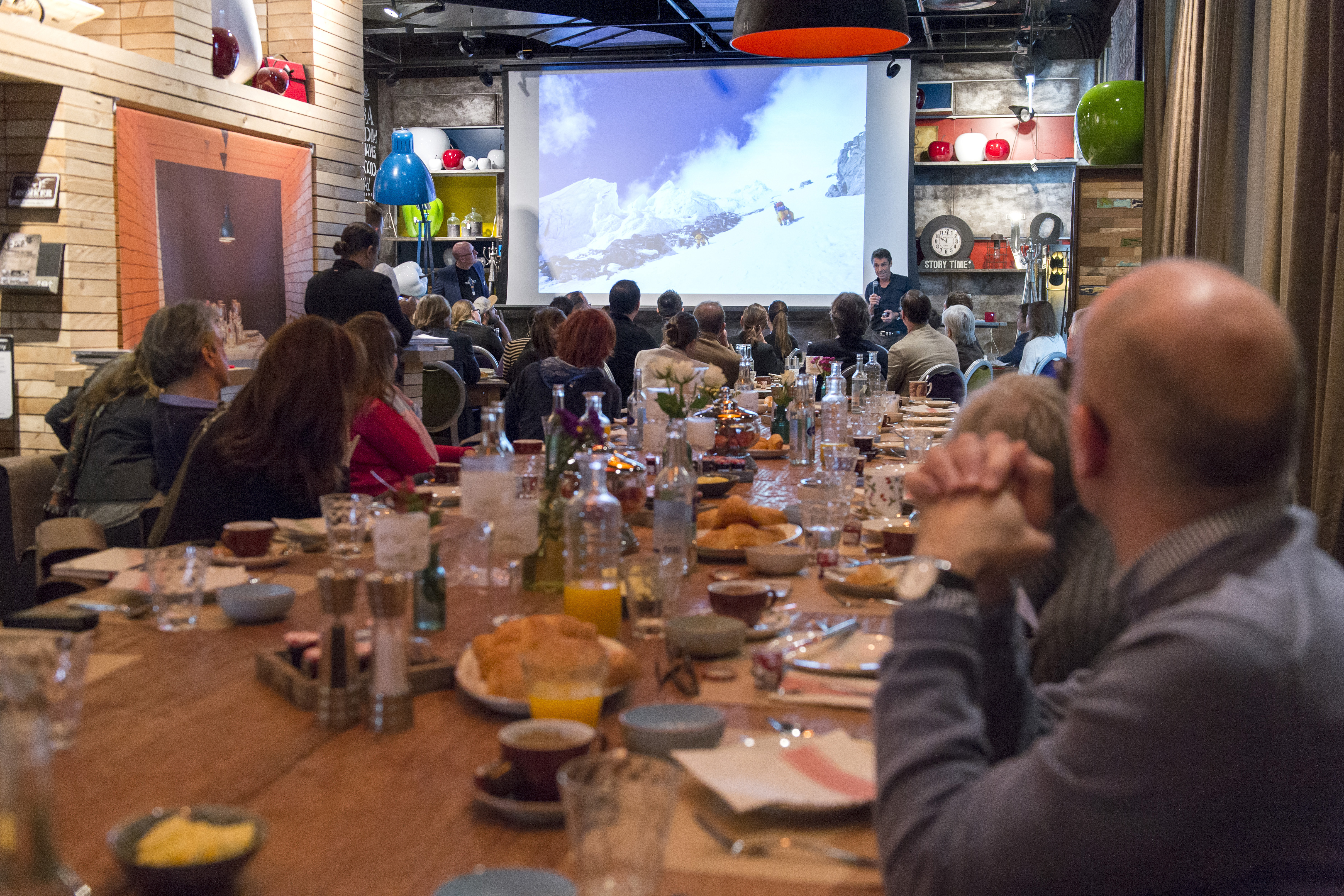 In der zweiten Keynote des Tages berichtete Actionfotograf Robert Bösch über Fotoshootings, für die man an seine Grenzen gehen muss. Der bekannte Fotograf, der bereits den Mount Everest und andere Achttausender bestiegen hat, erzählte von aussergewöhnlichen Shootings und der steten Herausforderung zwischen Schaffen und Scheitern. Was passiert, wenn man 300 Skifahrer in Formation an einem Steilhang fotografiert? Was passiert, wenn sich 20 Bergsteiger für ein Foto parallel wie an Gitarrensaiten von einem Massiv abseilen? Robert Böschs Ausführungen sind immer auch eine stimmige Analogie auf die schnelle und komplexe Arbeitswelt von heute.