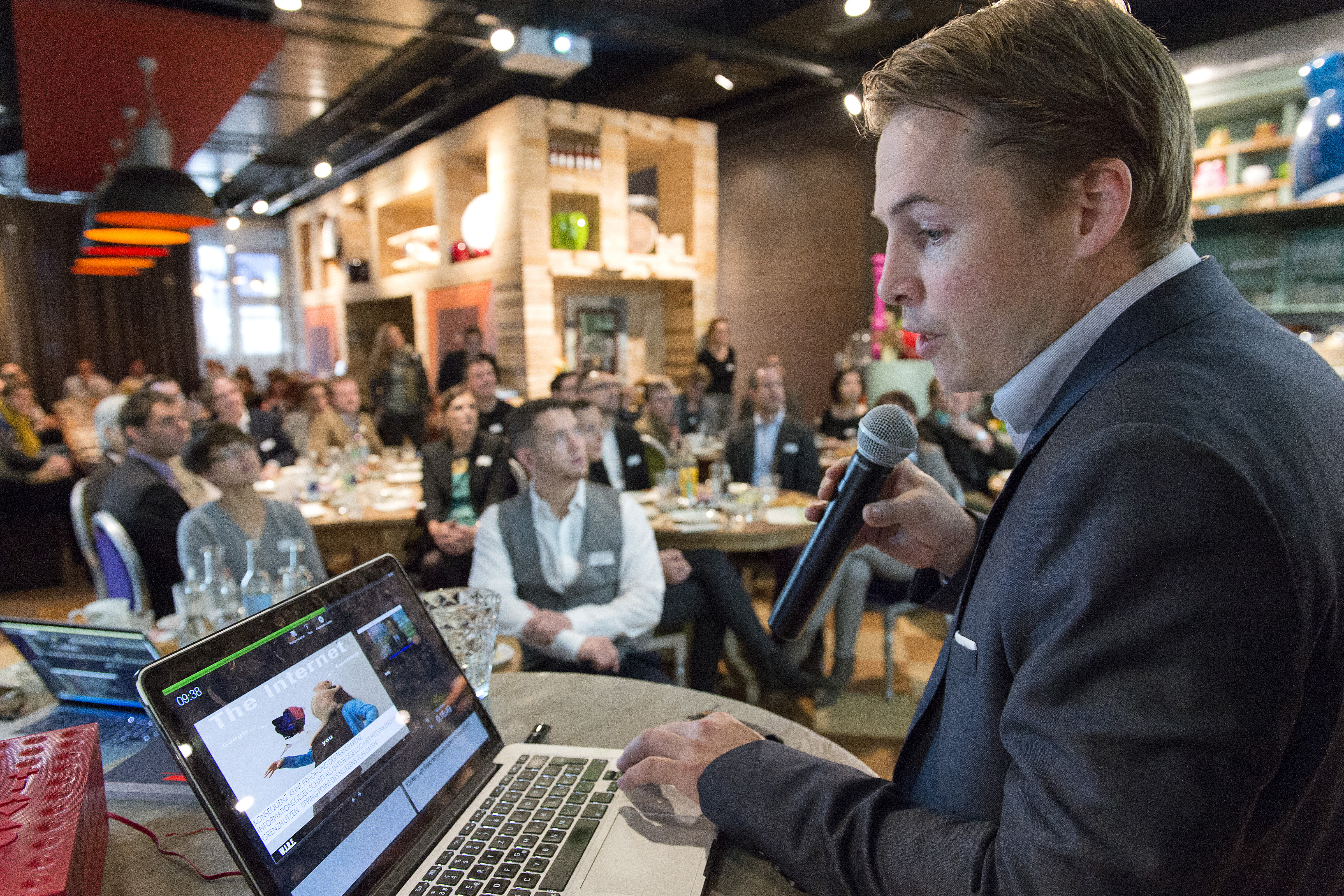 "Millionen von Smartphones produzieren heute eine Datenmenge, die nicht mehr bewältigt werden kann. Das führt dazu, dass wir oft nicht mehr die richtigen Schlussfolgerungen aus den Informationen ziehen können", berichtete Stephan Sigrist, Zukunftsforscher und Gründer des Think Tanks W.I.R.E.. In seiner Keynote erläuterte er die Entstehung einer intelligenten Infrastruktur in den Städten, aus der neue Wachstumsmärkte resultieren. Trotzdem, so forderte Sigrist, braucht die Datengesellschaft mehr Menschenverstand. Nur digitale Angebote, die den Menschen einen echten Nutzen bieten, werden sich am Ende durchsetzen. Ansonsten drohe ein gegenläufiger Trend, der sich in einem Rückzug ins Analoge ausdrückt.