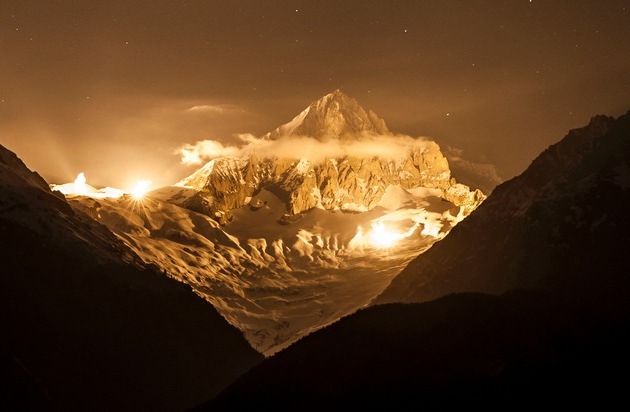 Das Kunstprojekt "13 Sterne am Gipfel" ist für das beste PR-Foto des Jahres ausgezeichnet worden. Anlässlich der Feierlichkeiten zum 200-jährigen Jubiläum des Beitritts zur Schweizerischen Eidgenossenschaft wurden im Kanton Wallis dreizehn Berggipfel spektakulär angeleuchtet und fotografiert. Aus dieser Serie hat das Motiv "Bietschhorn" beim PR-Bild Award die Kategorie Tourismus und Freizeit gewonnen und wurde als bestes PR-Foto des Jahres in der Schweiz geehrt. Der PR-Bild Award wird von der sda-Tochter news aktuell für herausragende Fotografie von Unternehmen und PR-Agenturen vergeben.