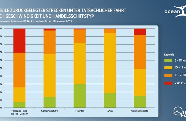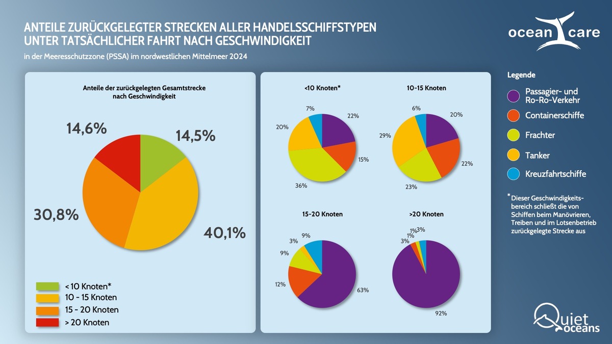 Trotz IMO-Empfehlungen bleiben Schiffsgeschwindigkeiten im Walschutzgebiet Mittelmeer unverändert. Neue Analyse zeigt: 57% der zurückgelegten Gesamtstrecke wurde mit Geschwindigkeiten über 10 Knoten gefahren.