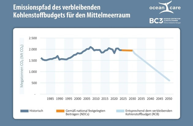 Madrid, Spanien: Nach der aktuellen Entwicklung wird der Mittelmeerraum sein restliches Kohlenstoff-Budget bereits 2035 ausgeschöpft haben, berechnet eine neue Studie des Basque Centre for Climate Change (BC3) im Auftrag von OceanCare. Wenn die Staaten nicht ihre Treibhausgasemissionen um etwa 6% pro Jahr reduzieren, wird die Region die Ziele des Pariser Klimaabkommens verfehlen und sowohl die Bevölkerung als auch die Ökosysteme sprunghaft ansteigender Gefahr aussetzen.