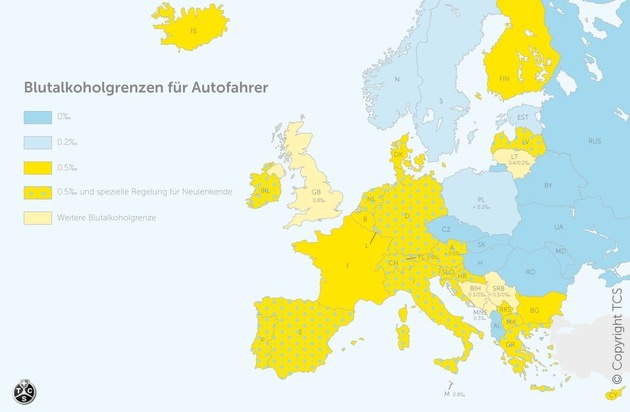 Grundsätzlich rät der TCS davon ab, unter Alkoholeinfluss ein Motorfahrzeug zu lenken. Auch in geringen und gesetzlich noch erlaubten Mengen kann Alkohol die Reaktionsfähigkeit negativ beeinflussen und ermüdend wirken. Im Sinne der Verkehrssicherheit gilt deshalb auch weiterhin: Wer fährt, trinkt nicht!