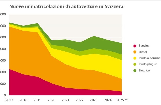 Il mercato svizzero delle nuove immatricolazioni ha attraversato un anno difficile e tra gennaio e novembre ha registrato un calo rispetto al 2024. L'analisi annuale del TCS mostra tuttavia che le auto elettriche (ibride plug-in e auto elettriche) hanno saputo nel complesso difendersi bene sul mercato delle auto. Le auto completamente elettriche hanno aumentato la loro quota di mercato tra le nuove immatricolazioni di 3 punti percentuali, raggiungendo il 22%. La loro quota di mercato è risultata solo leggermente inferiore a quella delle auto a benzina, che hanno ancora raggiunto il 24%. Le ibride plug-in sono cresciute di 2 punti percentuali, arrivando a una quota di mercato dell'11%.