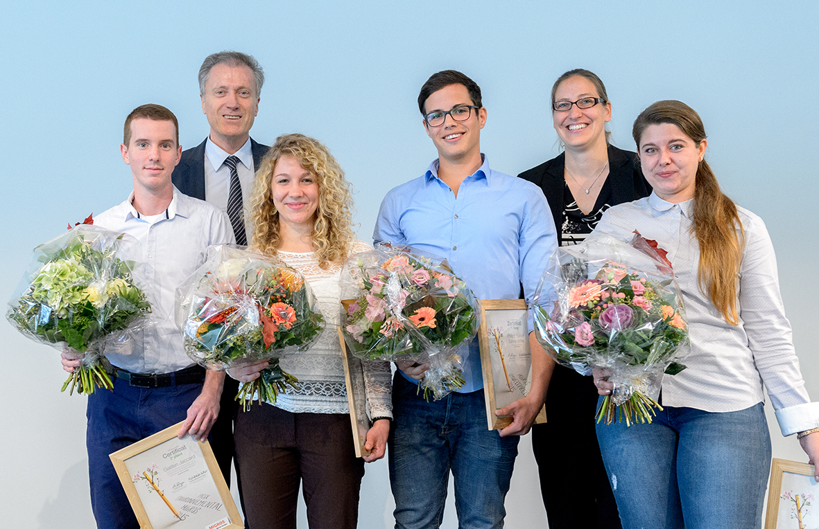 Das Duo Sarina Vetter, Maschinenbauingenieurin der ETH, und Philipp Bühler, Industrie Designer der ZHdK, wurde für ihren energieeffizienten Heizkörper mit dem ersten Preis ausgezeichnet. Sie haben einen Adapter für bestehende Heizkörper entwickelt, welcher deren Leistung und Effizienz steigert. Mit lautlosen Lüftern und einer Oberflächenvergrösserung bewirkt er eine schnellere Wärmeabgabe in den Raum. "Wir sind begeistert, wie viele tolle Abschlussarbeiten wir erhalten haben. Die Auswahl fiel uns nicht leicht. Uns hat aber schliesslich die interdisziplinäre Zusammenarbeit und die simple Idee des Siegerprojektes überzeugt", begründet Jurypräsidentin Christine Wiederkehr-Luther der Migros den Entscheid. Mit der Auszeichnung erhalten die Studierenden 10'000 Franken Preisgeld. Der studierte Agronom Gaëtan Jaccard aus Apples erreichte mit seiner Bachelorarbeit an der hepia (Haute école du paysage, d'ingénierie et d'architecture de Genève) den zweiten Platz und gewinnt 3'000 Franken. Er hat eine Anbautechnik für Erdbeeren entwickelt. Zusätzliche Pflanzen, sogenannte Fangpflanzen, schützen die Erdbeeren auf natürliche Weise vor Schädlingen und der Einsatz von Insektiziden kann reduziert werden. Den dritten Platz, der mit 1'000 Franken Preisgeld dotiert ist, hat Laura Germann, Bachelorabsolventin der ETH belegt. Sie hat eine umfassende Analyse zum Thema Foodwaste in einer Bäckerei erstellt und praxisorientierte Massnahmen zur Verringerung der CO2-Bilanz und des Food Waste aufgezeigt.