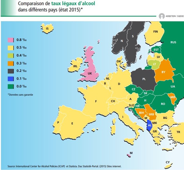 * La cartina d'Europa con i limiti d'alcolemia può essere scaricata dal sito www.dipendenzesvizzera.ch alla rubrica "Fatti e cifre". http://www.addictionsuisse.ch/faits-et-chiffres/alcool/circulation-routiere/taux-legaux-dalcool/