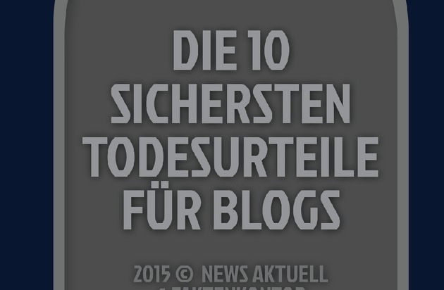 Ausschließlich um sich selbst kreisen, Suchmaschinen ignorieren und Kommentare konsequent unbeantwortet lassen - diese und andere Fehler führen dazu, dass Unternehmensblogs nicht den gewünschten Erfolg erzielen. Unter dem Titel "Die 10 sichersten Todesurteile für Blogs" haben die dpa-Tochter news aktuell und Faktenkontor jetzt eine gemeinsame Infografik über die größten Fehler beim Bloggen veröffentlicht.