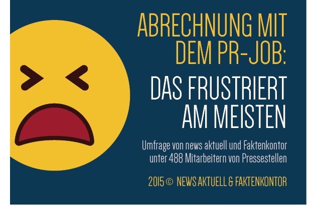 Wie soll ich das bloß alles schaffen? In der vorgegebenen Zeit und mit den vorhandenen Ressourcen? Zu viele Aufgaben für zu wenig Mitarbeiter: Das ist mit Abstand der größte Frust-Faktor in deutschen Pressestellen. Die dpa-Tochter news aktuell und Faktenkontor veranschaulichen in einer neuen Infografik die häufigsten Ursachen für Unzufriedenheit im PR-Job. Mehr als 480 Mitarbeiterinnen und Mitarbeiter von Pressestellen haben an der Umfrage teilgenommen.