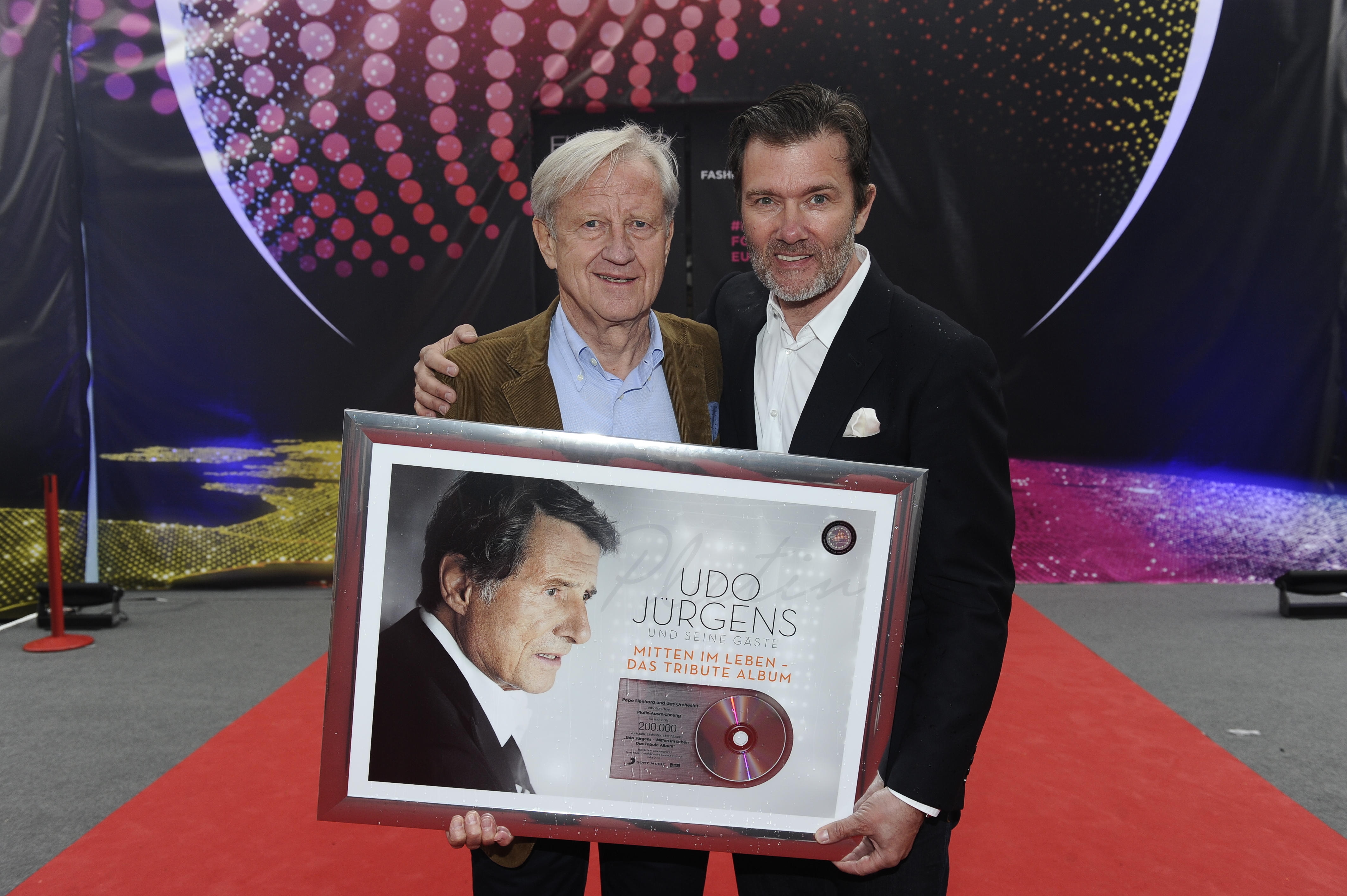 Am 20. Mai wurde der Sänger und Komponist Udo Jürgens im Rahmen des Eurovision Song Contest 2015 mit einem Special-Tag auf dem Rathausplatz in Wien geehrt. Der legendäre Entertainer, der vor genau fünf Monaten auf tragische Weise ganz unverhofft mitten aus dem Leben und aus seiner ausverkauften Konzerttournee gerissen wurde, hatte den Contest 1966 im dritten Anlauf als erster Österreicher mit "Merci Chérie" gewonnen und in der Folge eine unvergleichliche Weltkarriere angetreten. Seither ist der Name Udo Jürgens untrennbar mit dem grössten internationalen Wettbewerb für Liederschreiber und Komponisten verbunden. Am Special-Tag "A Tribute Show to Udo Jürgens" wurde auf dem Rathausplatz durch den ORF ein Public Viewing der ZDF/ORF/SRF-TV-Gala zu Udos 80. Geburtstag organisiert. Anlässlich dieses Events durften Udos Sohn John, Udos langjähriger Bandleader Pepe Lienhard, Manager Freddy Burger und sein Team sowie die Produzenten der Witterung entsprechend einen öffentlichen Schauer von Gold- und Platin-Auszeichnungen aus dem Füllhorn von Sony Music über sich ergehen lassen. So erreichte das Album "Mitten im Leben" Gold (D) und Platin (A). Das "Tribut-Album" der TV-Geburtstagsgala wurde gar mit Doppelplatin (A), Platin (D) und Gold (CH) ausgezeichnet. Auch das Live-Album der letzten Konzerttournee wurde in Österreich bereits mit Platin veredelt, während dem die Schweiz Gold für das "Best Of"-Album nachreichen konnte. Ein eindrücklicher Beweis für die ungebrochene Beliebtheit des wohl bedeutendsten und beständigsten deutschsprachigen Unterhaltungsmusikers und Liederschreibers der letzten 50 Jahre.