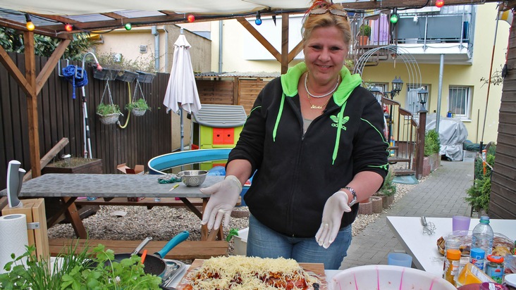 Silvia möchte als Vorspeise selbst gemachte Currywurst servieren. Und "selbst gemacht" heißt hier auch wirklich selbst gemacht: frisches Fleisch wird vom Bio-Bauernhof besorgt, zuhause durch den Fleischwolf gedreht und in Naturdärme gefüllt. Das Ergebnis kommt dann auf den Grill und wird mit selbst gemachter Currysauce serviert.