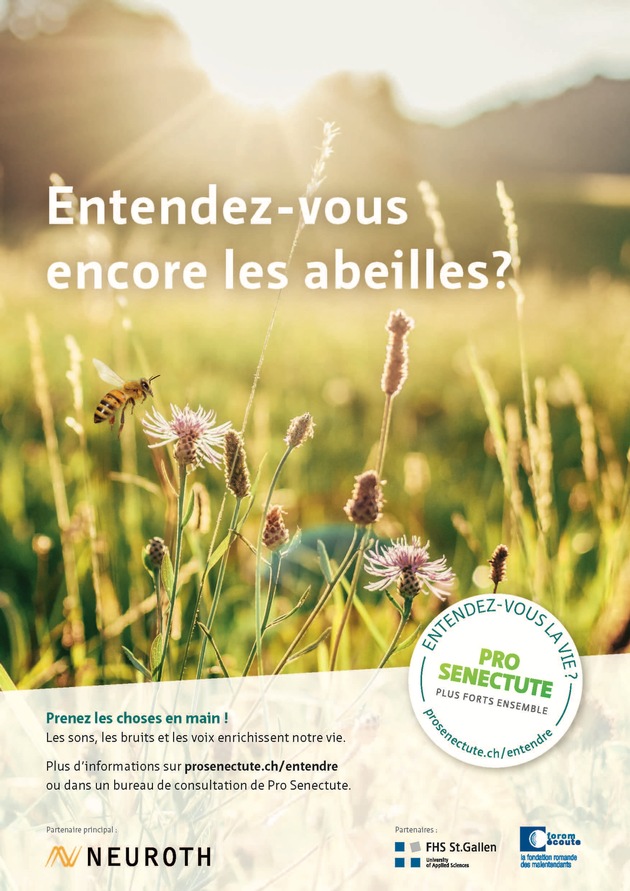 Les partenaires de la campagne sont Neuroth, la Haute école des sciences appliquées de Saint-Gall ainsi que forom écoute. Pour de plus amples informations : www.prosenectute.ch/entendre