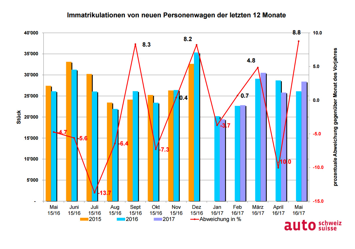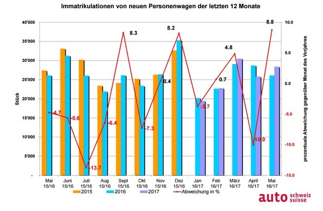 auto-schweiz: Starker Auto-Mai zieht Gesamtjahr ins Plus
