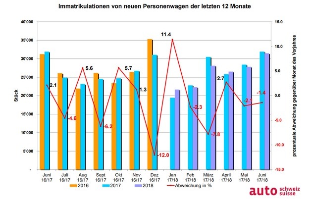 «Die Schweizer Autobranche blickt auf ein solides erstes Halbjahr zurück», kommentiert auto-schweiz-Mediensprecher Christoph Wolnik die Zahlen. «Das Vorjahresniveau konnte nahezu gehalten werden, was auch für 2018 insgesamt von Anfang an das erklärte Ziel war. Das Wachstum bei Alternativ-Antrieben ist erfreulich, spielt sich aber natürlich noch auf tiefem Niveau ab.» Dieses dürfte sich aber mit dem wachsendenden Modellangebot, sinkenden Preisen, grösseren Reichweiten und zusätzlicher Lade- und Tankinfrastruktur für alternative Treibstoffe weiter fortsetzen, so Wolnik weiter.
