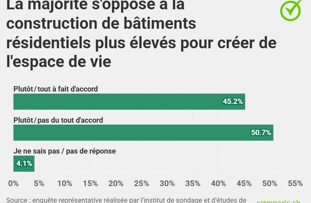 Communiqué de presse : La majorité de la population suisse s’oppose à la construction de bâtiments plus élevés et à la réduction des espaces verts