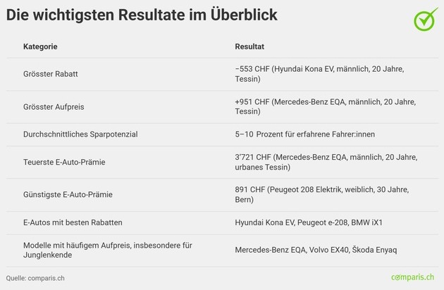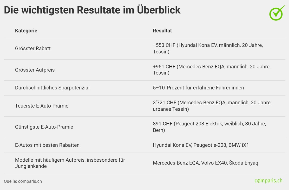 Comparis-Vergleich: Versicherungsprämien E-Autos und Verbrennermotoren