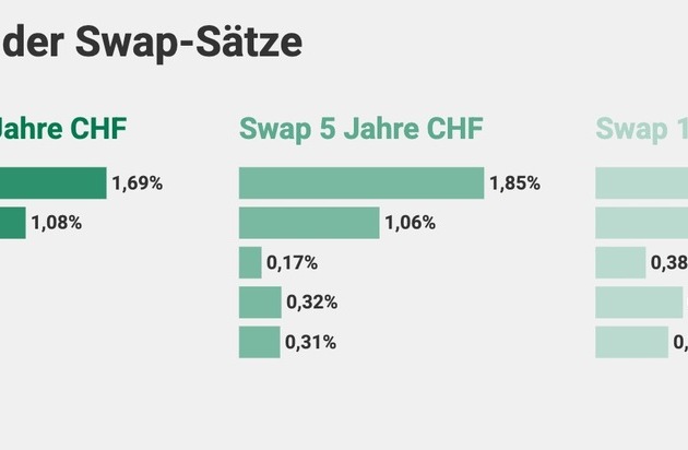 Die von über 30 Kreditinstituten öffentlich publizierten Referenzzinsen (sogenannte Richtsätze) für 10-jährige Festhypotheken lagen am 31. März bei 1,81 Prozent. Das sind 0,12 Prozentpunkte weniger als zu Jahresbeginn mit 1,93 Prozent. Der Richtsatz für 5-jährige Festhypotheken lag am 31. März bei 1,56 Prozent und 0,06 Prozentpunkte niedriger gegenüber Jahresbeginn mit 1,62 Prozent. Hingegen notierten 3-jährige Festhypotheken mit 1,39 Prozent rund 0,03 Prozentpunkte etwas höher als noch zu Jahresbeginn mit 1,36 Prozent.