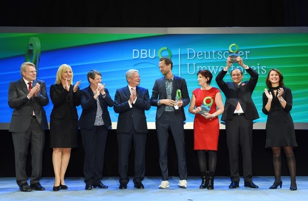 Nachdem Gauck und die DBU-Kuratoriumsvorsitzende und Parlamentarische Staatssekretärin im Bundesumweltministerium, Rita Schwarzelühr-Sutter, die Auszeichnungen überreicht hatten, wies DBU-Generalsekretär Dr. Heinrich Bottermann in seinen Schlussworten darauf hin, dass Umweltschutz und Nachhaltigkeit heute - durchaus nach Rückschlägen - in der Mitte aller gesellschaftspolitischen Institutionen angekommen seien. Den Durchbruch habe im Vorjahr das Klimaschutzabkommen von Paris gebracht, das nun tatsächlich in Kraft treten werde. Bundespräsident Gauck habe diesen Prozess maßgeblich gefördert: Zum einen durch seine zutreffenden Worte zur Bedeutung des Umweltschutzes, wonach Umweltschutz ein zivilisatorischer Lernprozess ist, der uns ein Leben lang begleitet. Zum anderen habe Gauck fünfmal in Folge den Deutschen Umweltpreis überreicht, obwohl sicher auch andere Themen weit vorne auf der Agenda gestanden hätten. Bottermann an Gaucks Adresse: "Eines bleibt für uns immer mit Ihrer Amtszeit verbunden: die in Osnabrück 2013 geborene Formulierung 'Umweltschutz muss Freude machen' ist der Leitspruch unserer Arbeit."