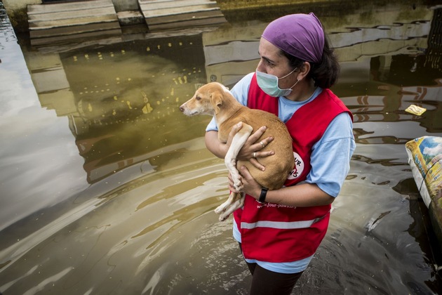 Meterhohes Wasser in den Strassen und Stromausfälle haben die Menschen in der indischen Stadt Chennai von der Aussenwelt abgeschnitten. Auch die Blue Cross of India Tierklinik in Chennai stand unter Wasser. VIER PFOTEN Tierärzte behandeln in regelmässigen Einsätzen Tiere mit den Blue Cross for India Kollegen. Nun haben eben diese Kollegen das VIER PFOTEN Einsatzteam um Hilfe gebeten. Die internationale Tierschutzorganisation reagierte rasch mit finanzieller Unterstützung und entsandte zusätzlich ein Team bestehend aus drei Tierärzten unter der Leitung von Dr. Anca Tomescu und Jackson Zee, Leiter der Tiernothilfe bei VIER PFOTEN, in die schwer getroffene Metropole.