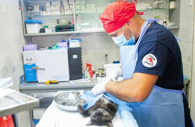 QUATRE PATTES a lancé ses projets de soins aux animaux errants en Ukraine en 2012. Depuis le début de la guerre en 2022, l’organisation de protection des animaux a étendu ses efforts pour venir en aide aux animaux en détresse grâce à plusieurs initiatives clés, notamment des services cliniques mobiles, des projets pour les chats errants dans cinq régions et plusieurs projets de coopération. QUATRE PATTES met en œuvre des programmes durables de soins aux animaux errants selon la méthode CNVR (catch-neuter-vaccinate-return). Cette méthode permet de contrôler, gérer et réduire de manière durable et humaine les populations d’animaux errants. Au total, près de 58 000 chiens et chats errants ont été stérilisés, vaccinés et soignés avec succès.