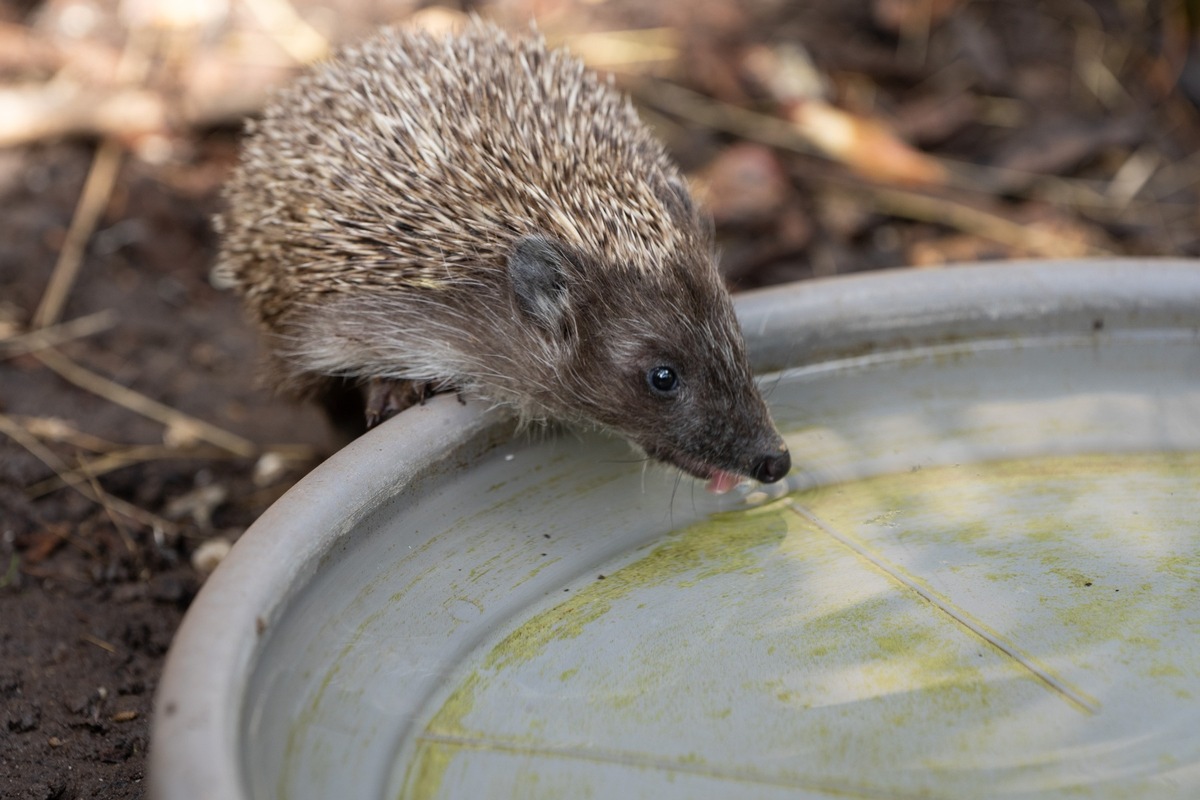 Seit einigen Tagen hat eine Hitzewelle die Schweiz fest im Griff. Sie bringt nicht nur uns Menschen kräftig ins Schwitzen, sondern setzt auch Wild- und Haustieren zu. So müssen beispielsweise Vögel und Igel einen grösseren Aufwand betreiben, um Wasserstellen zu finden. Gartenbesitzerinnen und Gartenbesitzer können hier Abhilfe schaffen, indem sie flache Schalen mit Wasser aufstellen. «Die Wasserstellen müssen allerdings täglich gereinigt werden, damit sich darin keine Krankheitserreger bilden. Am besten macht man das mit heissem klaren Wasser ohne Spülmittel», erklärt Dominik del Castillo, Campaigner für Wildtiere bei VIER PFOTEN Schweiz.