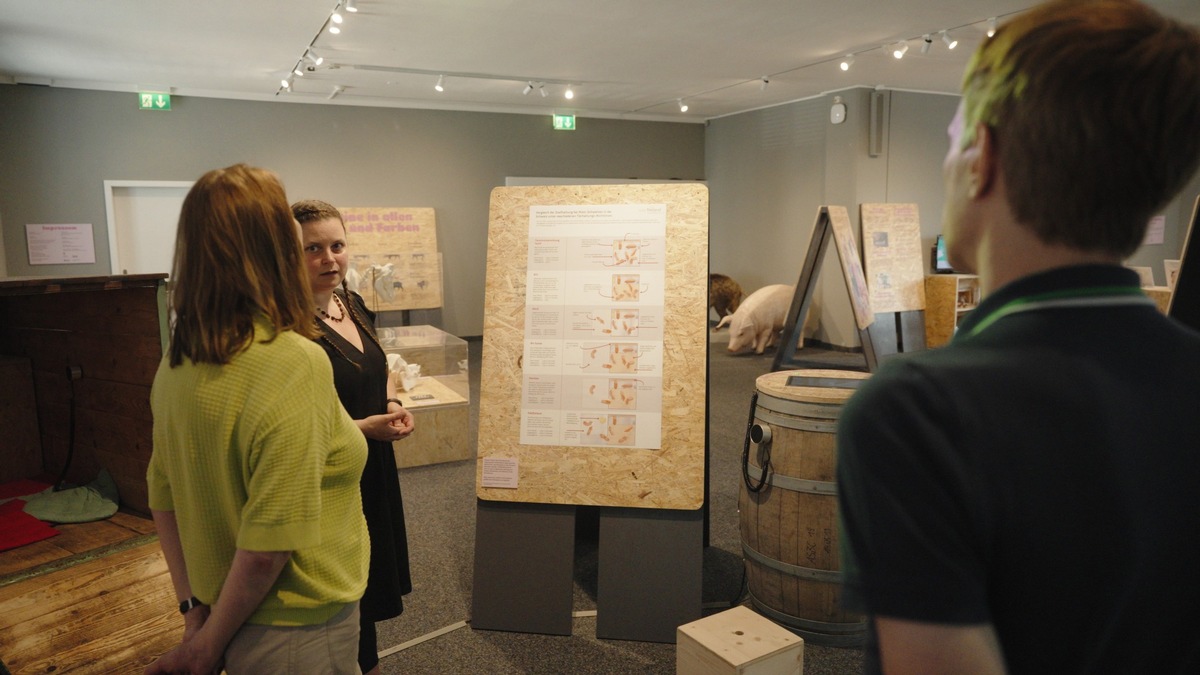 «Das, was ich gerade beschrieben habe, ist ein wesentlicher Faktor, dass wir die Besuchenden ganz nah an die Schweine heranführen und diese quasi vom Hof in die Stadt holen. Die Stadtbewohnerinnen und -bewohner sehen natürlich weniger lebende Schweine. Aber auch auf dem Land verschwinden diese Tiere hinter Stallmauern. Diese Stallmauern sollen geöffnet werden, und in unserer Ausstellung kann man direkt das Tier entdecken.»