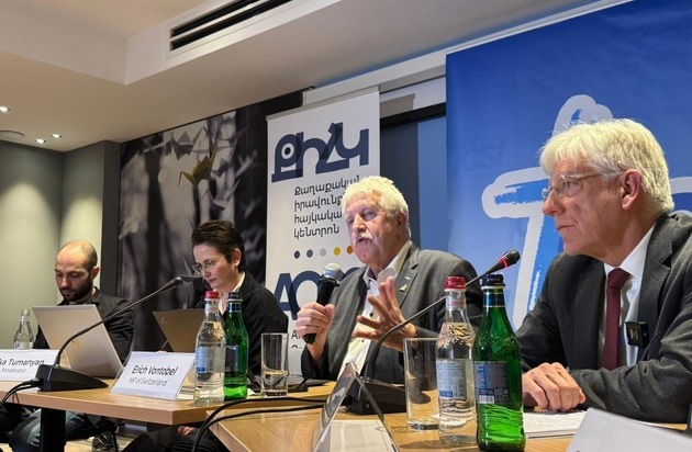 Erich Vontobel, Nationalrat (EDU, ZH) erinnerte daran, dass eine erfolgreiche Motion im Parlament die Schweizer Regierung verpflichtet, ein Friedensforum zwischen Aserbaidschan und Vertriebenen aus Bergkarabach zu ermöglichen, wo über deren sichere Rückkehr diskutiert wird.