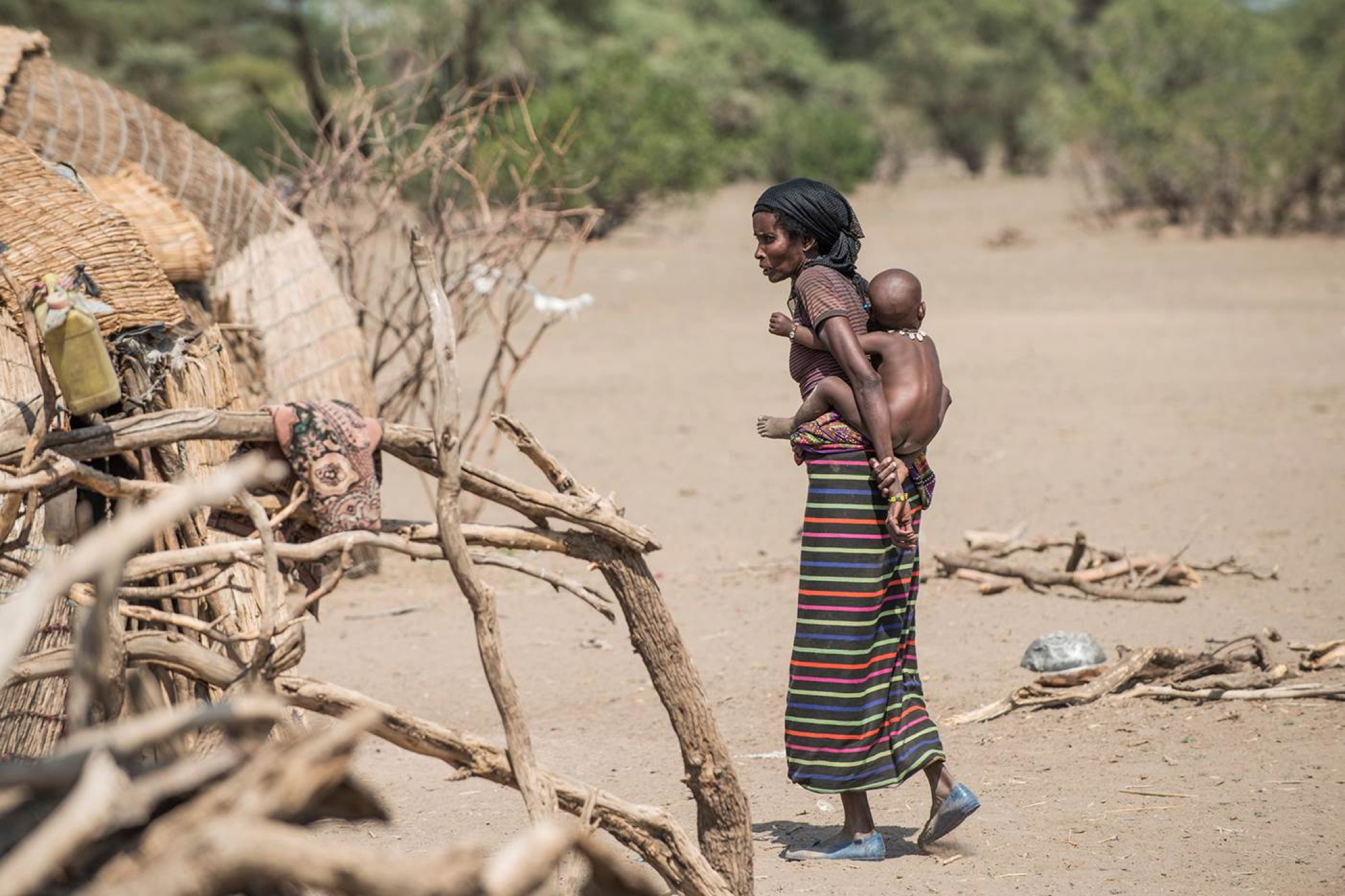 Im Danakil-Gebiet ist die Dürre besonders lebensbedrohlich. Die Herden der Afar-Nomaden durchstreifen die Savannen und Halbwüsten im Nordosten des Landes. In gewöhnlichen Jahren finden die Ziegen und Schafe genug Futter. Aber jetzt ist jeder Grashalm verdorrt, der Boden nackt und grau. Selbst die widerstandsfähigsten Dornsträucher haben ihre Blätter verloren. Die Tiere magern ab. Wenn sie nur noch Haut und Knochen sind, lassen sie sich nicht mehr verkaufen - und damit hungern auch die Menschen. Denn das Vieh ist ihre einzige Einkommensquelle. Ohne Viehverkauf können sich die Nomaden weder Getreide noch andere Grundnahrungsmittel leisten.