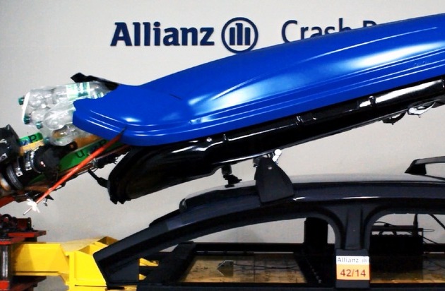 "Selbst wenn die Eile gross ist oder die Kinder unbedingt losfahren wollen, sollte man immer Sorgfalt walten lassen. Wie im Kofferraum muss auch in der Skibox die Ladung unbedingt gesichert werden - sonst werden andere Verkehrsteilnehmer immens gefährdet", sagt Jörg Zinsli, Leiter Schaden der Allianz Suisse. Das zeigt der Allianz-Crashtest eindrücklich auf: Bei einem Unfall auf der Strasse hätten die pro Paar rund fünf Kilo schweren Skier die Heckscheibe des vorderen Fahrzeugs wie ein Speer durchschlagen und die Insassen womöglich schwer verletzt. In dem Versuch löste sich die Dachbox ausserdem vom Grundträger, weil die einfachen Klemmbefestigungen die Kräfte nicht aushalten konnten. Das AZT geht davon aus, dass das auch bei vorschriftsmässig gesichertem Boxinhalt passiert wäre.