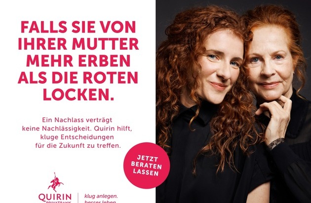 Mit der Kampagne will die Quirin Privatbank sich als vertrauensvoller Partner für das hochsensible Thema Erbschaft positionieren, denn sie hilft Erblassern und Erbenden, kluge Entscheidungen für ihre Zukunft zu treffen. "Vieles, was Eltern ihren Kindern vererben, können sie nicht beeinflussen: Charaktereigenschaften, Vorlieben, Talente und natürlich das Aussehen. Was genau und wie viel weitergegeben wird, ist beim Erbgut nicht planbar. Beim Vermögen sieht das anders aus. Wir sind der richtige Ansprechpartner, wenn Erblasser und Erbende rechtzeitig vorsorgen wollen", schließt Otten.
