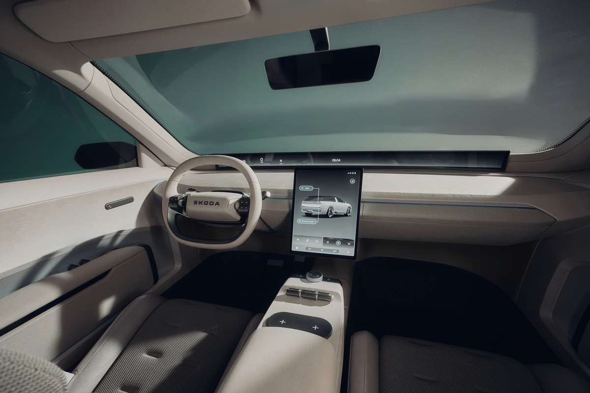 Als Beispiel für den kundenorientierten Ansatz von Skoda bietet die Vision O ein völlig neues Innenraumkonzept. Es zeichnet sich durch ein minimalistisches Design aus, das maximale Praktikabilität, Einfachheit und Geräumigkeit mit mehr als 650 Litern Kofferraumvolumen betont. Eine neu gestaltete und intuitiv steuerbare, kundenorientierte HMI-Architektur verfügt über ein anpassbares Horizon-Display für Fahrer und Beifahrer. Durch die Integration neuer KI-Funktionen wird Laura zu einer persönlichen Assistentin, die die Passagiere auf ihrer Reise begleitet und ihnen hilfreiche Informationen über die Umgebung liefert. Das neue Skoda Bio-Adaptive Lighting passt die Innenraumbeleuchtung automatisch an den natürlichen Lichtzyklus an und schafft so eine angenehme Umgebung. Gemäss der Simply Clever-Philosophie von Skoda bietet die Vision O mit neuen Funktionen wie einem tragbaren Lautsprecher oder einem voll integrierten Kühlschrank das gewisse Extra.