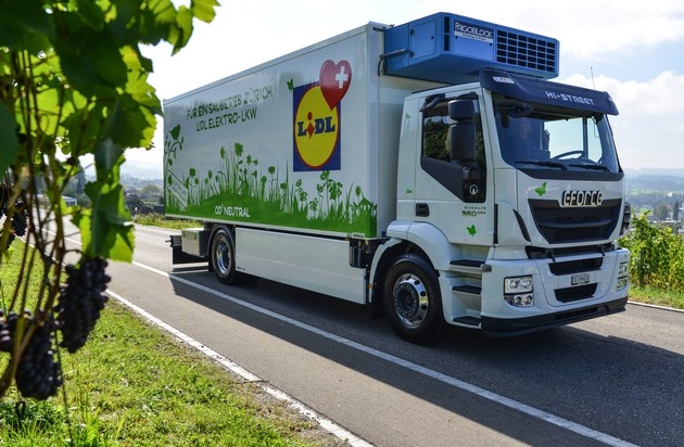 Nel proprio concetto globale di sostenibilità Lidl Svizzera si affida, tra l'altro, sulla promozione della mobilità elettrica. Oltre alle stazioni di servizio di ricarica elettrica gratuite nei vari negozi destinate ad auto e biciclette elettriche, Lidl Svizzera scommette sulla mobilità elettrica anche per la logistica. Così i due veicoli commerciali a trazione elettrica di proprietà Lidl con il marchio E-Force forniscono quotidianamente le merci ai negozi di Zurigo e dintorni, silenziosamente e senza inquinare. I veicli commerciali elettrici vengono riforniti di carburante prodotto con l'idroelettrico si guida quindi quasi senza emissioni di CO2. Come primo in Svizzera uno dei due veicoli commerciali elettrici ha raggiunto il traguardo dei 100.000 chilometri. Tra poco sarà applicabile anche al secondo veicolo. Insieme, i due veicoli commerciali a trazione elettrica in meno di 2 anni hanno già risparmiato più di 125 tonnellate di CO2.