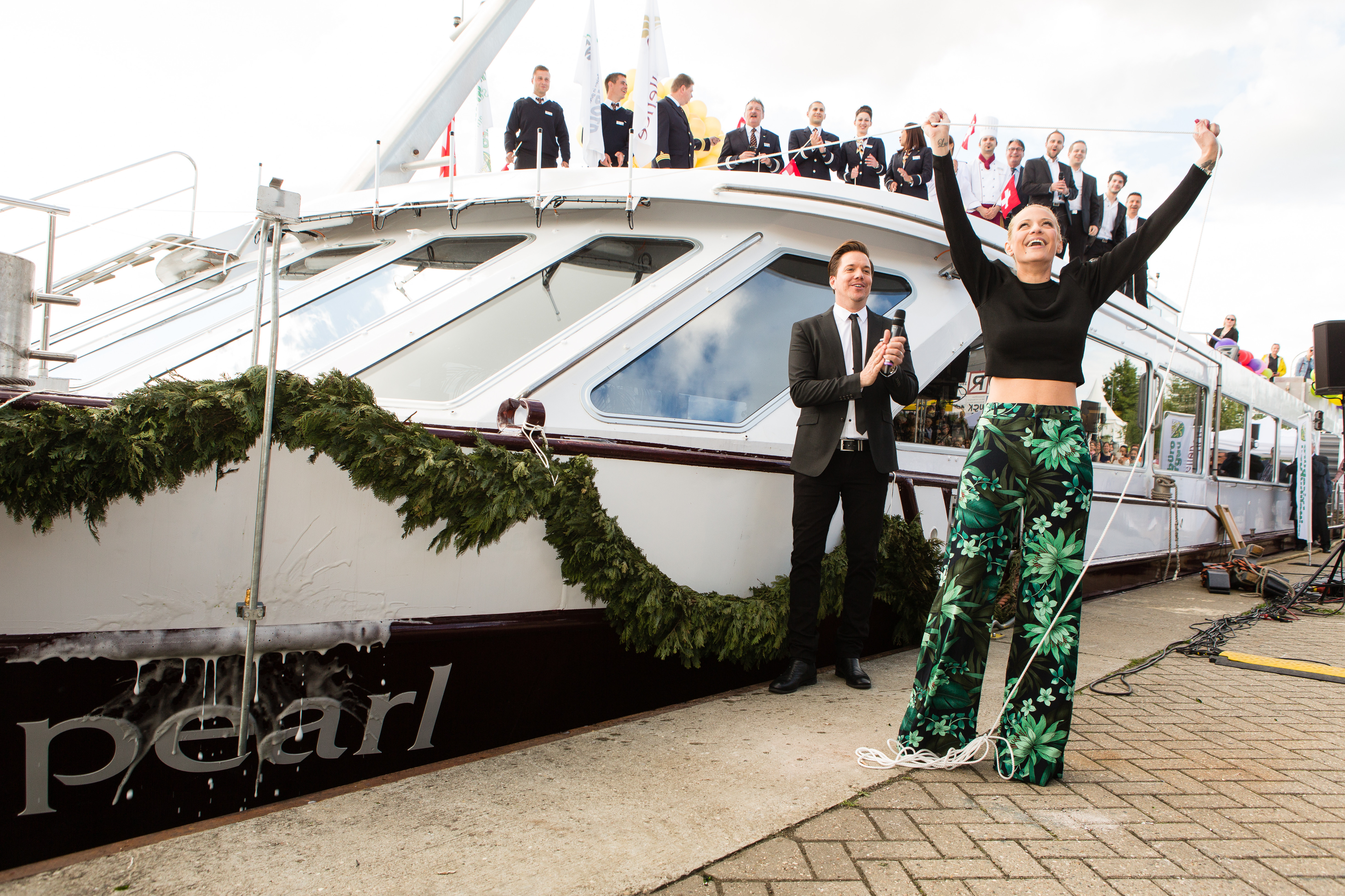 Über 500 Gäste fanden sich am Basler Schiffsanleger Klybeck ein und warteten gespannt auf die Ankunft des kleinen «Schweizer Grandhotels». Dann traf die «Perle» ein. Viele Gäste nutzen die Gelegenheit, das neue Schiff in Augenschein zu nehmen. Taufpatin war erneut die Excellence-Botschafterin Christa Rigozzi. Sie wünschte der Excellence Pearl die traditionelle Handbreit Wasser unter dem Kiel. Pfarrer Felix Christ gab dem Schiff und seiner Besatzung Glück und Segen auf den Weg. Sven Epiney führte durch die feierliche Zeremonie und das Unterhaltungsprogramm, unter anderem mit dem Berner Pop-Klassik-Quartett Phenomen.