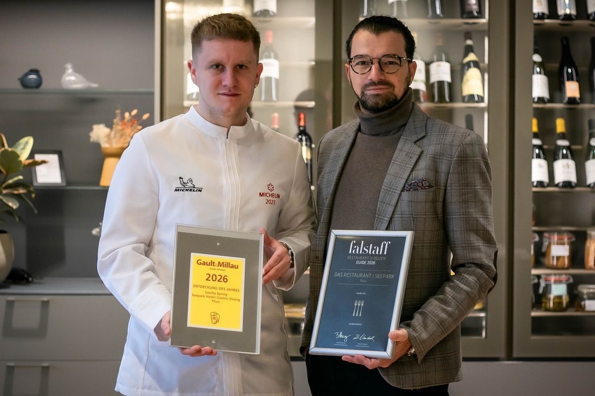 Dieser Herbst bringt gleich zwei bedeutende Auszeichnungen an den Thunersee: Der 25-jährige Sascha Spring, Küchenchef des Centric Dining im Hotel Seepark Thun, wird von GaultMillau mit 16 Punkten und dem Titel «Entdeckung des Jahres» geehrt. Nur zwei Wochen später doppelt Spring an der Verleihung von Guide Michelin mit dem ersten Stern am Thunersee nach. Damit ist Sascha Spring der jüngste Sternekoch der Schweiz. Mit dem Gourmet-Konzept Centric Dining steht das Vier-Sterne-Superior-Hotel Seepark definitiv auf der Bucketlist von Geniesserinnen und Geniesser.