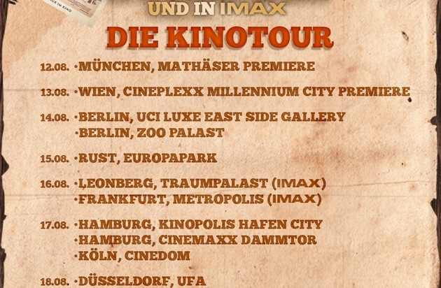 Ab dem 12. August präsentieren die Stars Michael Bully Herbig, Christian Tramitz und Rick Kavanian ihre neue Komödie dem Publikum. Den Auftakt der großen Kinotour bildet die Weltpremiere im Mathäser Filmpalast in München sowie die Österreich-Premiere in Wien, bevor die legendären Kult-Helden in weitere Städte in ganz Deutschland ziehen - darunter auch zur Eröffnung des neuen CineStar IMAX in Leipzig.