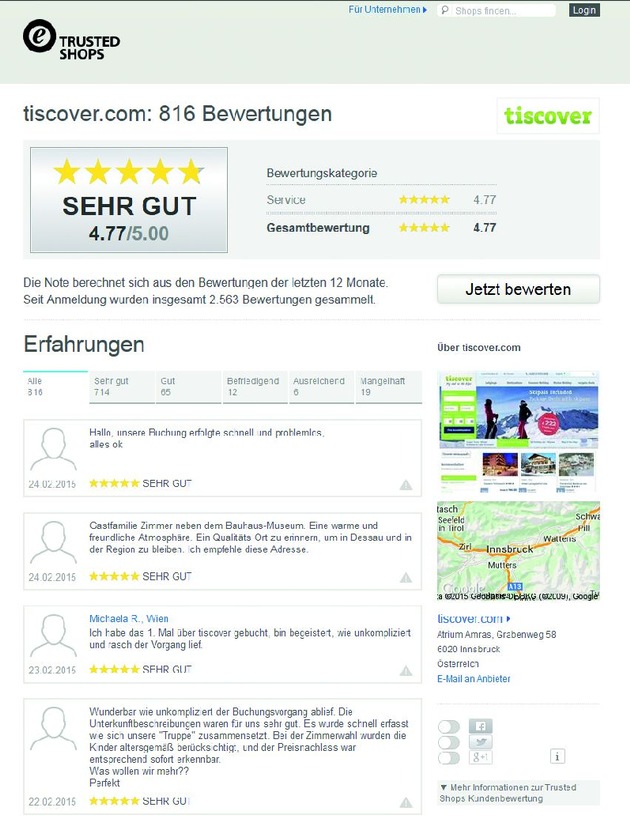 Buchungskunden hochzufrieden mit Tiscover - BILD