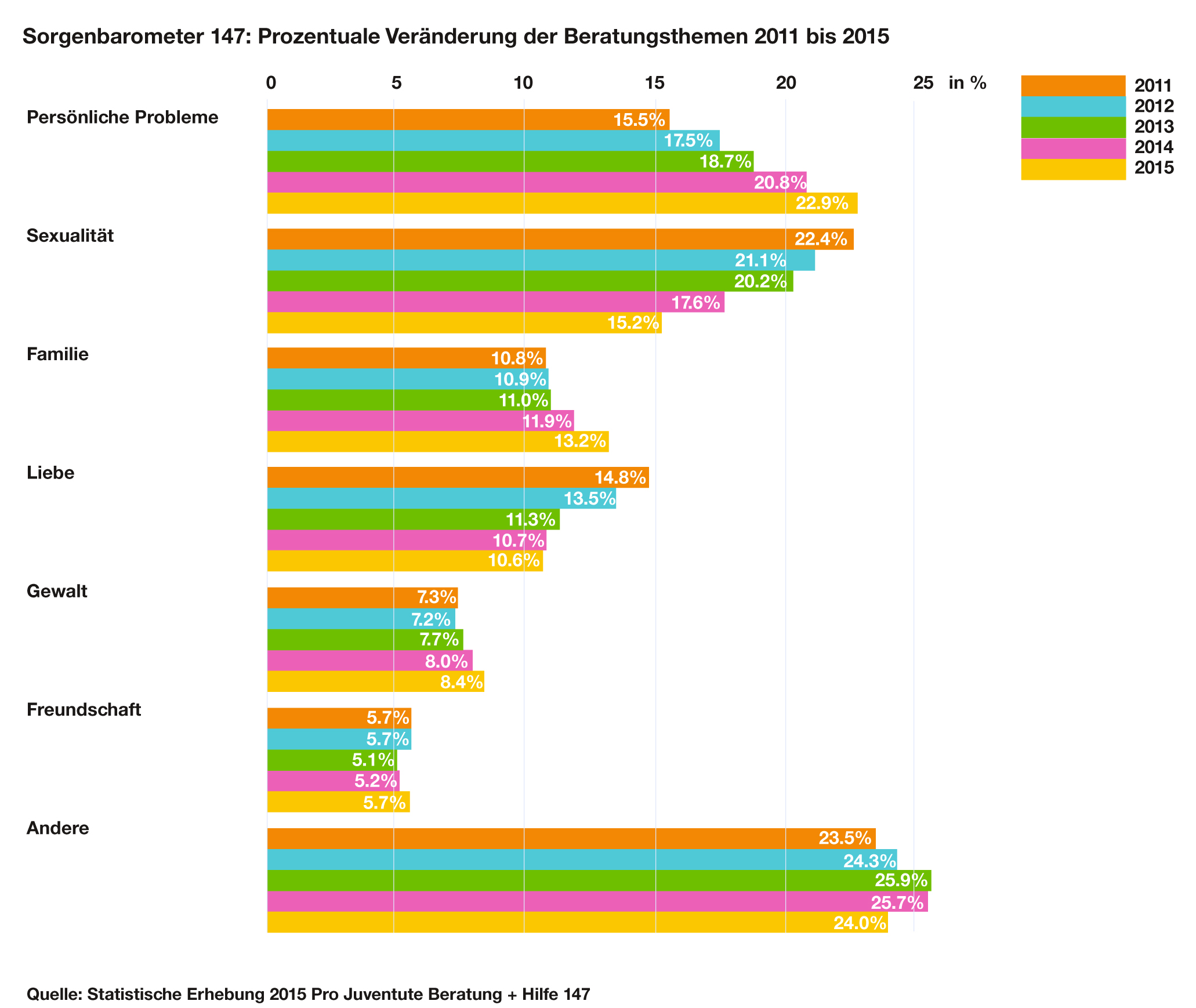 Weniger Unterstützung suchen die Jugendlichen dagegen rund um das Thema Sexualität (2015: 15,2% aller An-fragen, 2011: 22,4%) und Liebe (2015: 10,6%, 2011: 14,8%) - zum Beispiel bei Fragen zur Partnersuche, erste Liebe, Verhütung, zu Petting oder Geschlechtsverkehr. «Denn», wie Thomas Brunner erklärt, «bei einer Frage suchen wir Heute alle im ersten Schritt im Netz nach Antworten. Und da alles rund um Liebe und Sexualität die meisten Teenager beschäftigt, findet sich dazu viel an Information im Netz. Schwere persönliche Probleme lassen sich dagegen nicht mit allgemeinen Antworten lösen. Hier suchen die Jugendlichen die Empathie und Anteilnahme des Gegenübers, welche zum Beispiel in einer persönlichen Beratung bei 147 gegeben ist.»