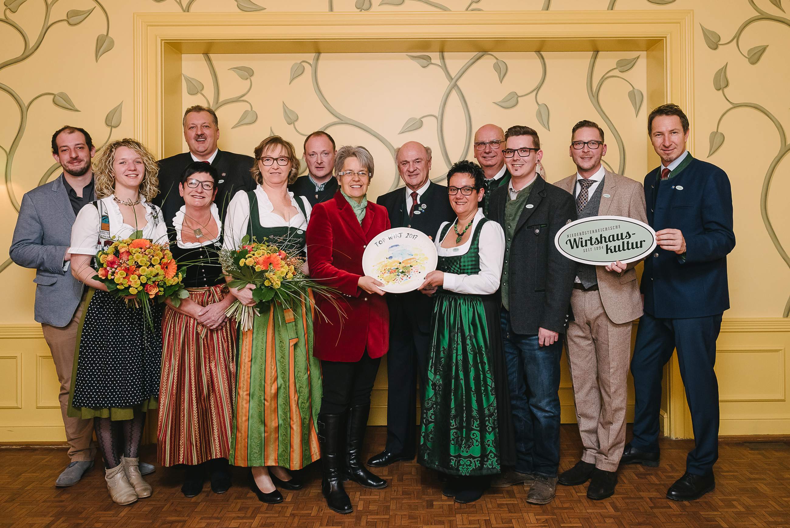 Mit saisonal wechselnden Gerichten, starkem Bezug zur Region und mit viel Liebe zum Detail kochen sich die Wirtinnen und Wirte der Niederösterreichischen Wirtshauskultur seit mehr als 20 Jahren in die Herzen ihrer Gäste. Gleichermaßen sind sie die kulinarischen Botschafter des Landes. Landauf und landab tragen rund 230 Wirtshauskultur-Betriebe das grüne, ovale Schild. Ein Erkennungsmerkmal, das für Qualität steht. Und für Herzlichkeit. Für traditionelle Küche, die gut und gerne kombiniert wird mit Kreativität und Weitblick für moderne Kochtrends. Für sie alle steht das Wohl des Gastes im Vordergrund. Darüber hinaus verbindet sie ein Ziel: die Wahl zum "Top-Wirt des Jahres". Diese verdienstvolle Auszeichnung, ebenso wie die Prämierung zum "Einsteiger des Jahres" und "Aufsteiger des Jahres" sowie die Verleihung des wertvollen Prädikats "Top-Wirt des Jahres", wird traditionell bei der Veranstaltung "Ein Fest für die Wirte" vergeben. So geschehen am Montagabend, den 23. Jänner 2017, als sich die ehemalige Reitschule von Schloss Grafenegg zum kulinarischen Treffpunkt für rund 500 erlesene Festgäste und Freunde der Wirtshauskultur verwandelte.