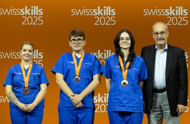 Il Consigliere federale Guy Parmelin, che aveva già visitato gli SwissSkills 2025 giovedì, non ha perso l’occasione di congratularsi personalmente con ogni medagliato e medagliata «Bravi, avete fatto un ottimo lavoro!» ha dichiarato il ministro dell’economia, che in gioventù ha portato a termine un apprendistato come agricoltore. «Passione, abilità, orgoglio professionale: questo è ciò che ci ha emozionato negli ultimi giorni. E lo affermo con convinzione: le vostre competenze sono una promessa per il futuro.».