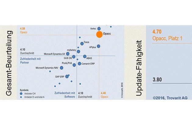 Opacc darf sich wiederum über ein hervorragendes Ergebnis freuen. Die Opacc Enterprise Software gehört klar zu den Gewinnern der neusten Trovarit-Studie.