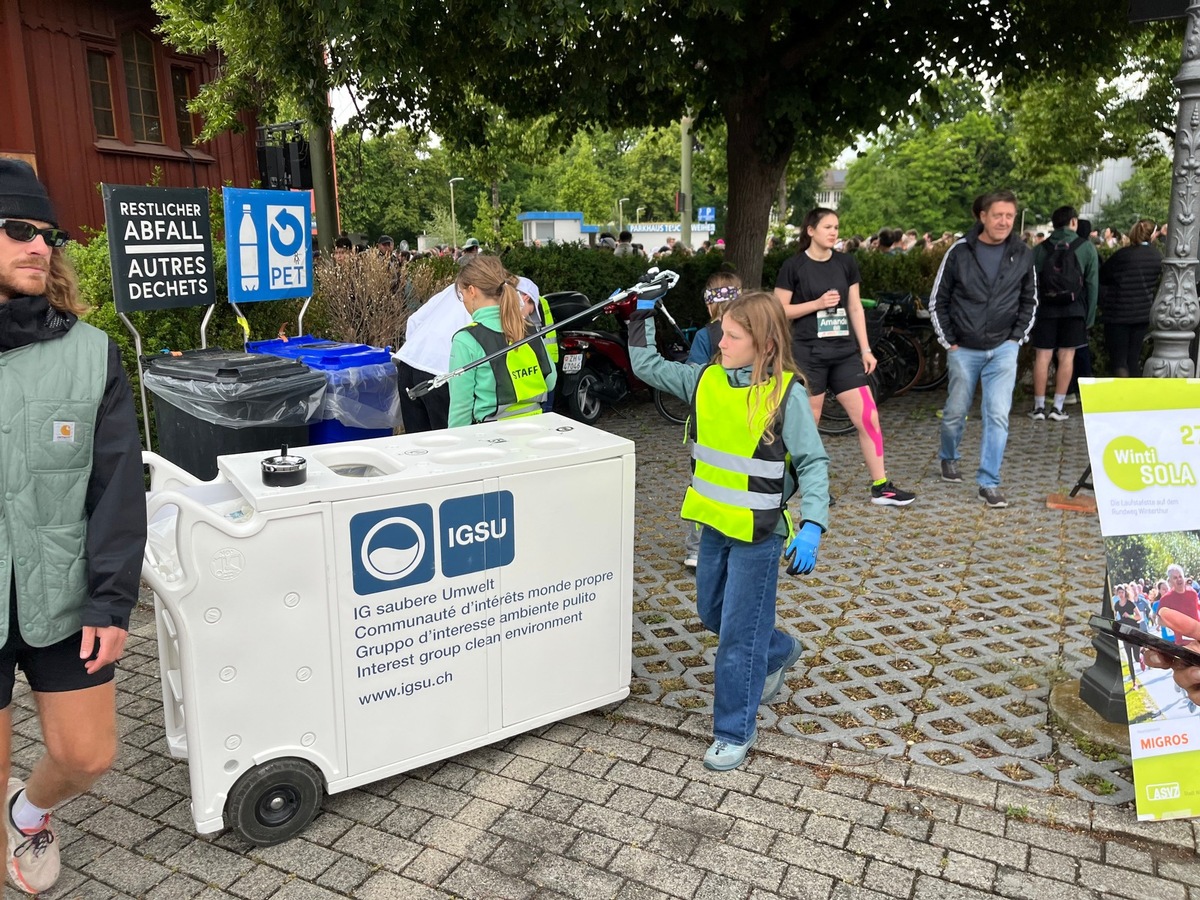 Auch in Winterthur sind die IGSU-Botschafter-Teams gerngesehene Gäste. Am Grand Prix Winterthur vom vergangenen Sonntag haben sie wieder für die Littering-Problematik sensibilisiert – gemeinsam mit Schülerinnen und Schülern der Winterthurer Schulen Mattenbach und Tössfeld. «Sie waren sehr motiviert und haben uns tatkräftig unterstützt», erklärt Cédric Québatte, Teamleiter der IGSU-Botschafter-Teams. «Eine der beiden Klassen konnte als Vorbereitung auf den Einsatz am Grand Prix Anfang Mai an einem IGSU-Schulworkshop teilnehmen.» Die Primarschülerinnen und -schüler konnten das Gelernte schliesslich an Teilnehmende des Grand Prix weitergeben: Zwischen Verpflegungs- und Start-Bereich haben sie und die IGSU-Botschafter-Teams mit Zuschauerinnen und Zuschauer über Littering und Recycling gesprochen und herumliegenden Abfall eingesammelt. «Die Zusammenarbeit zwischen der IGSU und der Schulen Mattenbach und Tössfeld hat auch dieses Jahr sehr gut funktioniert», freut sich Grand Prix-Nachhaltigkeitsverantwortliche Bernadette Schwizer. «Die Zuschauerinnen und Zuschauer waren sehr bemüht, ihren Abfall korrekt zu entsorgen.»