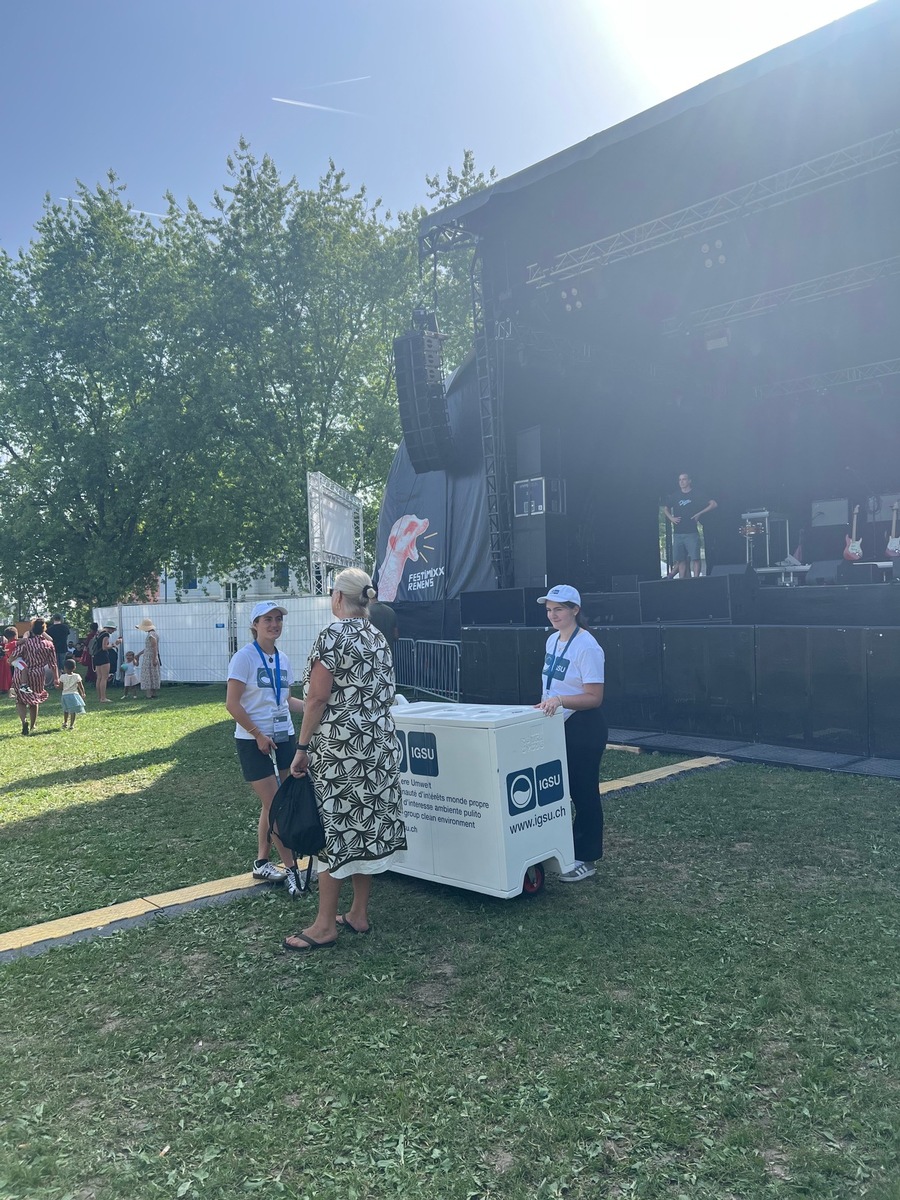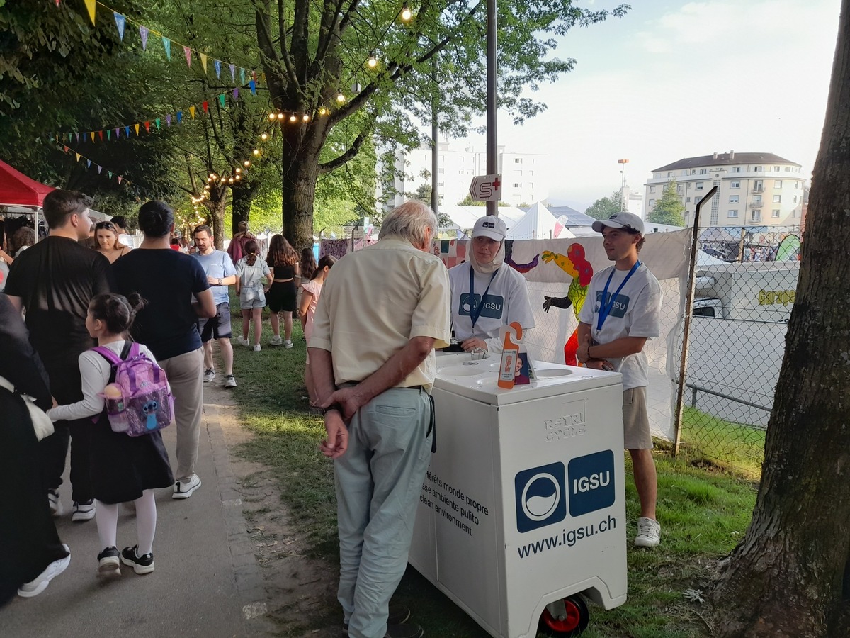 FESTIMIXX réuni la population, les associations et les nombreuses cultures présentes à Renens autour de concerts, d’activités et de stands de nourriture. Mais qui dit fête dit aussi déchets. Afin que ceux-ci soient éliminés correctement, les équipes d’ambassadeurs et d’ambassadrices IGSU ont sensibilisé le public au problème des déchets sauvages les 13 et 14 juin 2025 entre la gare et le site du festival. Elles l’ont informé sur les conséquences du littering, le recyclage et le système de consigne du festival, distribué des cendriers de poche et ramassé les déchets qui ont malgré tout fini par terre. «Afin de limiter le littering, seule de la vaisselle réutilisable a été employée a FESTIMIXX», explique Frédéric Schweingruber, responsable environnemental de Renens. «Nous sommes néanmoins ravis que les équipes d’ambassadeurs et d’ambassadrices IGSU nous aient aidés à sensibiliser les festivaliers.»