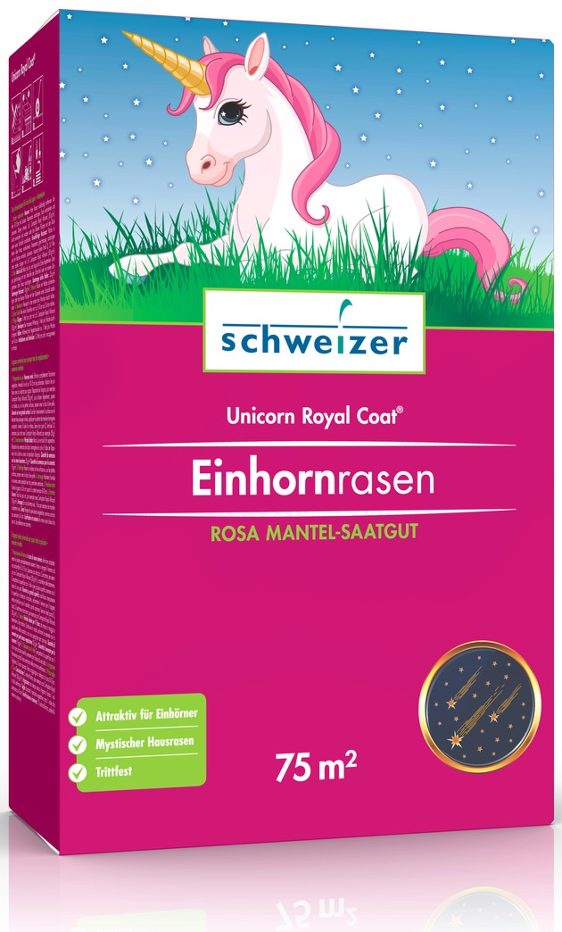 Der einmalige Einhornrasen Unicorn Royal Coat von SCHWEIZER ist jetzt in vielen Gartencentern und Baumärkten in der ganzen Schweiz erhältlich. Aber Achtung: nur für kurze Zeit und nur als Limited Edition. Jeder Einhorn-Fan und Rasenbesitzer sollte sich diese Gelegenheit auf keinen Fall entgehen lassen.