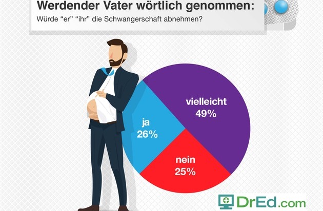 Nicht jeder, aber immerhin jeder vierte Mann (26 Prozent) geht mit dem Gedanken schwanger, selbst schwanger zu werden. "Er" würde "ihr" den Babybauch abnehmen. Das verrät eine aktuelle Studie der Online-Arztpraxis DrEd.com, die über 1.000 Menschen aus Europa und Amerika zur Familienplanung befragt hat.