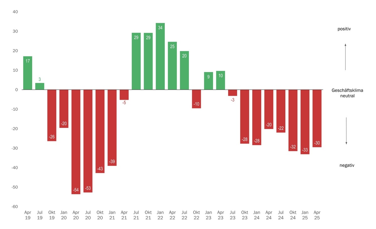 Der aktuelle KMU-MEM-Geschäftsklimaindex von Swissmechanic bestätigt: Die Lage in der Maschinen-, Elektro- und Metallindustrie bleibt angespannt. Auch im ersten Quartal 2025 ist keine Erholung in Sicht. Mit einem Indexstand von -30 Punkten bleibt der Geschäftsklimaindex deutlich im negativen Bereich. Rund 40 Prozent der befragten Unternehmen melden gegenüber dem Vorjahr rückläufige Auftragseingänge, Umsätze und Margen.