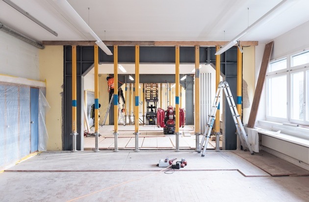 Drei Klassenzimmer und zwei Gruppenräume im Reckenschulhaus Thayngen SH werden zu einer einzigen grossen Lernlandschaft umgebaut. Dieses Bauprojekt setzen Lernende in Eigenregie um. Möglich machen das der Verein "Gemeinsam gegen den Fachkräftemangel" und Partner wie die Debrunner Acifer AG. Sie fördert mit ihrem Engagement den Berufsnachwuchs sowie dessen Ausbildungsqualität - und stärkt dadurch die Fachkräfte von morgen.