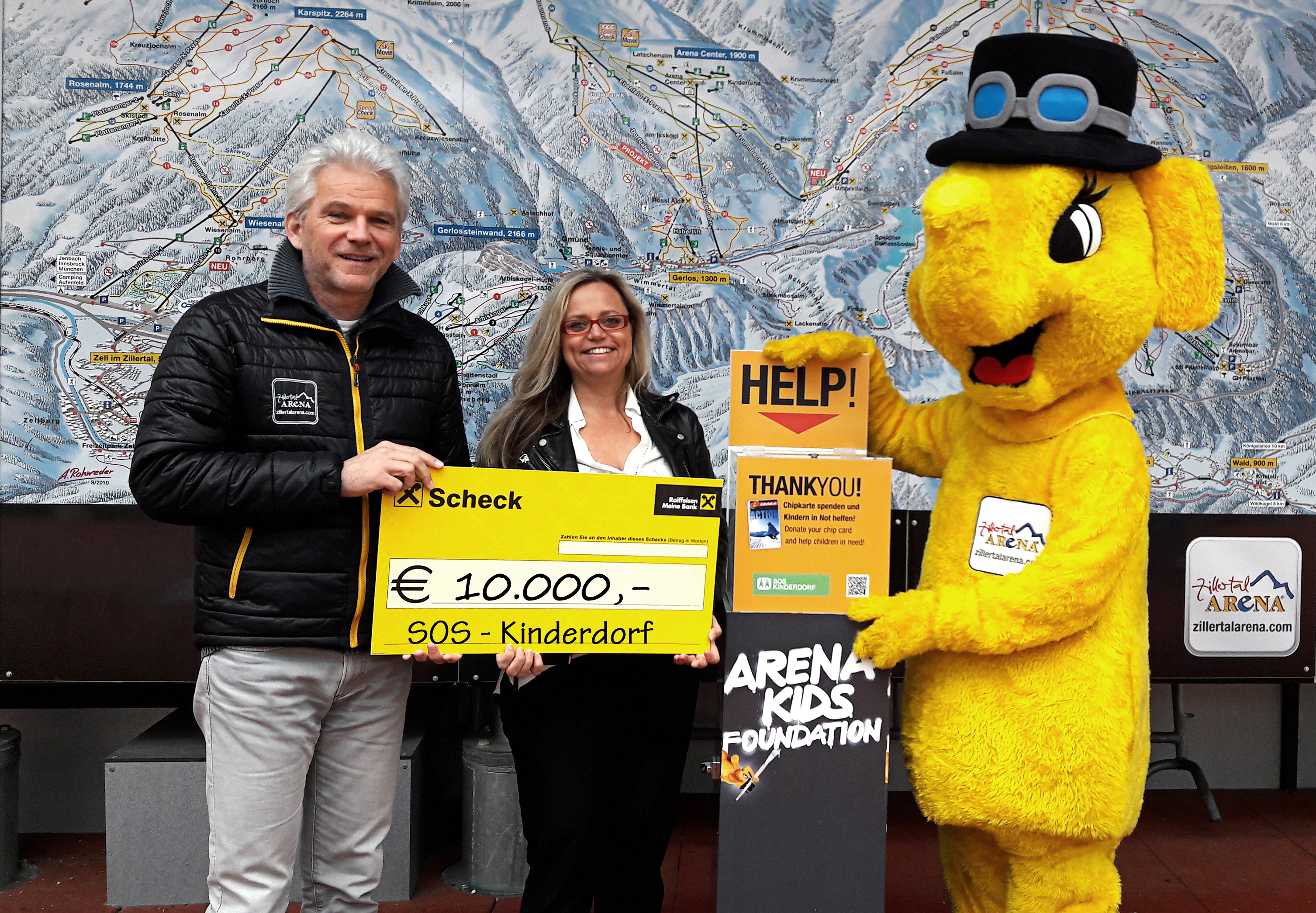 Das familienfreundlichste Skireiseziel Österreichs (lt. SnowTrex Familienumfrage 2015) - die Zillertal Arena - nimmt seinen Ruf als bestes Familienskigebiet sehr ernst. Deshalb wurde in der Saison 2013/2014 die "Arena Kids Foundation" ins Leben gerufen, bei der die Arena-Gäste durch die Spende des Chipkarten-Pfands einen wertvollen Beitrag zur Unterstützung notleidender Menschen leisten können. Bisher wurden insgesamt bereits ? 35.000,- für karitative Zwecke gesammelt. Heuer wurden über diesen Weg ? 10.000,- gesammelt, die zu 100 % an SOS-Kinderdorf gehen.
