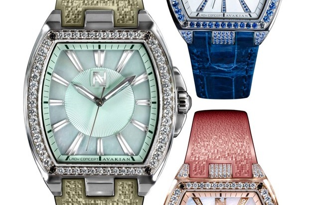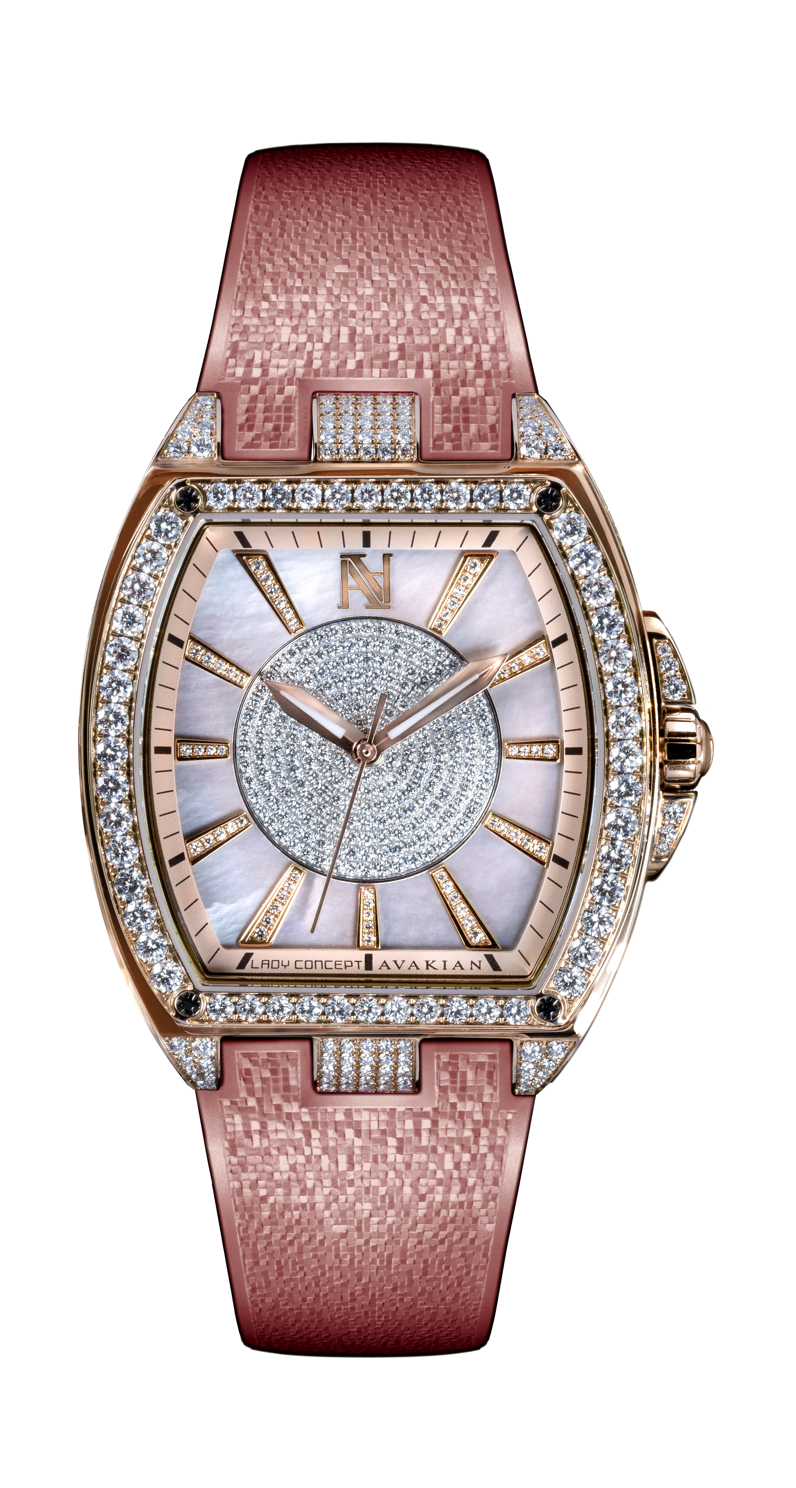 Die Kollektion Lady Concept ist eine juwelenbesetzte Interpretation der Tonneau-Form und zeigt eindrücklich, dass das Unternehmen kreative Grenzen sprengen und luxuriöse Designs der Superlative anbieten will. Avakian verleiht Armbändern aus Gummi neuen Glamour: das Gummiband für Schmuckuhren mit perlmuttfarbener Mosaikstruktur ist branchenweit das Erste seiner Art. Die zeitgemässe Kollektion Lady Concept kann sowohl tagsüber als auch abends getragen werden und passt perfekt zu den edlen und hochwertigen Schmuckkollektionen der Marke.
