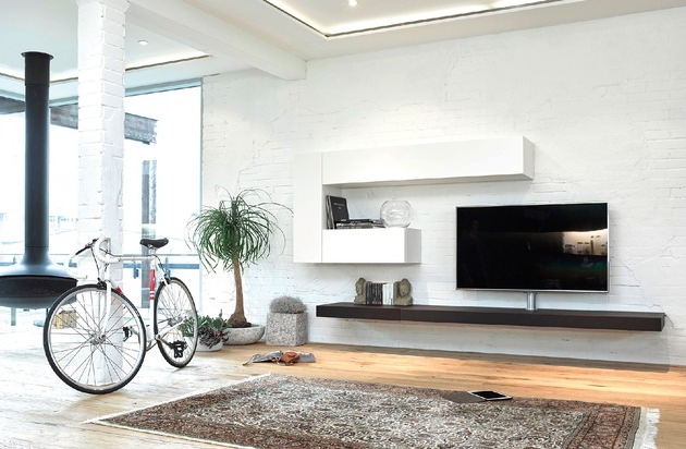 Twenty von Spectral: die smarte Verbindung aus Home und Entertainment Zur imm cologne 2015 präsentiert der Smart-Furniture-Pionier Spectral die neue Möbelserie Twenty. Twenty ist ein puristisches, einfach zu konfigurierendes Kastenmöbelprogramm mit lackierten und furnierten Oberflächen. Es verbindet Home mit Entertainment und bietet alles, was die Möbelplanung und das Leben einfach macht. Highlight der Serie ist ein superflaches integriertes Soundsystem, das sich vollkommen unsichtbar in einem dekorativen Board verbirgt. Besonders smart ist die kabellose Steuerung des Soundsystems und Fernsehers per Smartphone oder Tablet Kinderleicht planbar dank Rastermaß 20 Dank eines Rastermaßes von 20 cm wird Möbelplanung bei Twenty zum Kinderspiel. Wie beim Spielklassiker Tetris werden die hochformatigen, querformatigen und quadratischen Kastenelemente einfach links und rechts aneinandergereiht oder übereinander gestapelt. Da die Elemente immer bündig abschließen, ist Twenty jederzeit um zusätzliche Möbelelemente erweiterbar. Oberflächen und Farben Die Oberflächen von Twenty sind seidenmatt lackiert bzw. furniert. Zur Auswahl stehen 26 aktuelle Lackfarben und die drei Furniere Sand Oak, Indian Walnut und Dark Oak. Die stoffbespannten Lautsprecherabdeckungen gibt es in den drei Farben Black, Silver und Carbon. Unzählige Gestaltungsmöglichkeiten Die Kastenbreiten variieren von 20 cm bis 160 cm, die Kastenhöhen von 10 cm bis 180 cm. Angebotene Kastentiefen sind 38 und 48 cm. Ergänzend dazu gibt es Regalboards in den Tiefen 28 und 48 cm. Die Kästen gibt es wahlweise offen, mit Klappe, mit Tür, mit Schublade oder mit Stoffabdeckung. Die Fronten von Twenty sind grifflos und werden per Touch-System bedient. Platziert wird Twenty wandhängend, auf einem Kufenfuß oder auf einem flachen Sockel. Unsichtbarer Sound Twenty bietet Ihnen vier Möglichkeiten der Soundintegration. Mit dem SCA3, dem BRA2 und dem High-End-System VRA2 stehen drei bewährte Spectral-Soundsysteme bereit. Alle Systeme werden ins Möbel integriert und verbergen sich hinter einer stoffbespannten Front. Eigens für Twenty entwickelt wurde das 7 cm flache XTA1, das sich in einem nur 10 cm flachen Musicboard versteckt. Alternativ gibt es Kastenelemente für Soundbars verschiedener Hersteller. Eine Fernbedienung für alles Alle neuen Soundsysteme von Spectral sind mit einer IR-Lernfunktion ausgestattet. Kunden benötigen also keine zusätzliche Fernbedienung oder komplizierte Universalfernbedienung, sondern können ihr Soundsystem mit ihrer gewohnten TV-Fernbedienung steuern. Drehbare TV-Halterung mit integrierter Kabelführung An der drehbaren Universal-Halterung können nahezu alle handelsüblichen Fernseher befestigt und bei Bedarf gedreht werden. Die Kabel werden unsichtbar in der Säule geführt, so ist kein zusätzlicher Kabelkanal notwendig. Anbindung von Smartphones und Tablets Besonders smart ist bei Twenty die Anbindung von Smartphones und Tablets gelöst: Bilder, Songs, Hörbücher und Videos können von der Festplatte des Mobilgeräts oder aus der Cloud kabellos an den Fernseher und das Soundsystem übertragen werden. Über den Internet-Zugang des Mobilgeräts oder Fernsehers besteht Zugriff auf beliebte Video-Portale wie YouTube oder Vimeo, Musikstreaming-Dienste wie Wimp oder Spotify und Foto-Netzwerke wie Pinterest, Instagram, Flickr oder Tumblr. Mit einem zusätzlichen Media Player wie z.B. Apple TV können Filme, Fernsehserien und Podcasts ausgeliehen oder gekauft und abgespielt werden. Passender Beistelltisch Connect Passend zu Twenty gibt es die Beistelltische Connect mit integriertem Universal- Dock zum Aufladen aller aktuellen Mobilgeräte von Apple. Das eingebaute Dock ist austauschbar, die Lösung damit zukunftssicher. Über Spectral/Kurzprofil Die Spectral Audio Möbel GmbH ist Pionier für Smart furniture. Das Unternehmen mit Sitz im schwäbischen Pleidelsheim (zwischen Stuttgart und Heilbronn) entwickelt Möbel mit intelligenten Zusatzfunktionen wie integrierte Lautsprecher und die Anbindung von Smartphones ins Wohnumfeld. Vertrieben werden die Produkte sowohl über ausgewählte Händler als auch über Möbelhäuser. Spectral wurde 1994 von den Brüdern Frank, Heiko und Markus Krämer gegründet. Heute wird das Unternehmen von Markus Krämer und René Glasmacher geführt. Es exportiert weltweit und beschäftigt bei einem Jahresumsatz von über 20 Millionen Euro 150 Mitarbeiter. Abdruck honorarfrei/Beleg erbeten Bilder-Download www.spectral.eu/presse