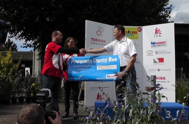 Das motiviert ihn dazu, am diesjährigen Powerman-Charity-Run am Sonntag, 4. September um 10 Uhr 45 zu starten. Im Kielwasser der weltweit besten Duatlethen rennen, laufen oder hiken mit ihm fast hundert engagierte Menschen, viele davon Mitarbeitende aus den Filialen der Jumbo-Markt AG. Die Zeit spielt bei diesem 5 KM Lauf keine Rolle, es geht einzig darum, ein wenig Sport zu treiben und damit gleichzeitig Menschen zu unterstützen, welche aufgrund ihrer Behinderung kaum Sport treiben können. Der Erlös dieses Benefiz-Laufs kommt vollumfänglich muskelkranken Menschen zugute.