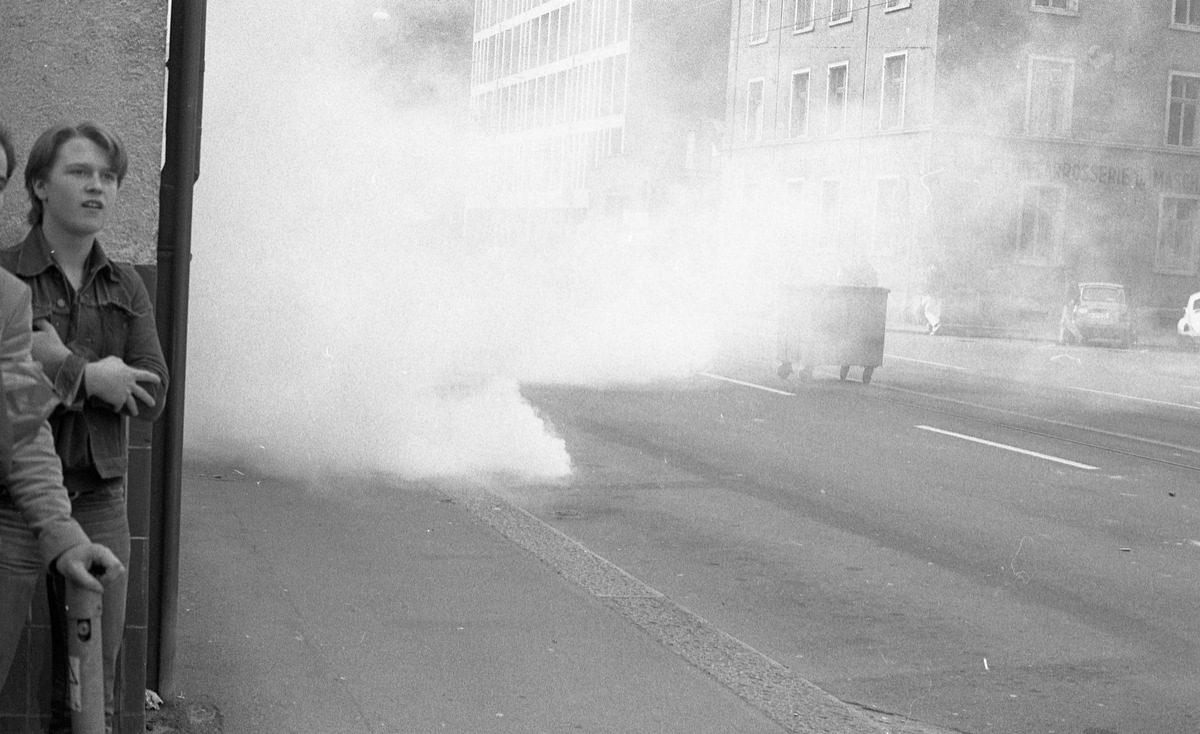 Mit der Ausstellung schlägt die okaj zürich eine Brücke von den Ereignissen der Vergangenheit zur Gegenwart. Gezeigt werden ausgewählte Fotografien und Filme aus Zürich, Basel, Bern und Lausanne – mit einem besonderen Fokus auf den Zürcher Kreis 5, der 1980 Epizentrum der Proteste war und heute Standort der Photobastei ist.