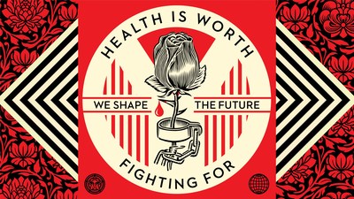 Shepard Fairey meinte dazu: "Ich lasse mich immer gerne von Organisationen inspirieren, deren Ziel es ist, dem Leiden ein Ende zu machen und denjenigen zu helfen, die unsere Unterstützung am meisten brauchen. Ich glaube nicht, dass unser Mitgefühl Grenzen haben sollte. Was mir besonders gefällt, ist, dass dieses Modell Unternehmen dazu ermutigt, etwas an die Gemeinschaft zurückzugeben und positiv zur Welt beizutragen. Genau diese Philosophie spiegelt sich auch in meiner eigenen Kunst- und Geschäftspraxis wider. In meiner Arbeit für (RED) habe ich Symbole verwendet, die hoffentlich universell Bedeutung haben und das Beste im Menschen ansprechen. Ich kann einfach nicht akzeptieren, dass Menschen vorzeitig von uns gehen bzw. geeignete Therapien nicht erhalten können, die ihnen helfen würden. AIDS, Malaria und Tuberkulose stellen große Probleme dar, und daher bin ich froh, mit meinem kleinen Beitrag diesen massiven Aufwand unterstützen zu dürfen, der darin besteht, diese Erkrankungen zu behandeln."